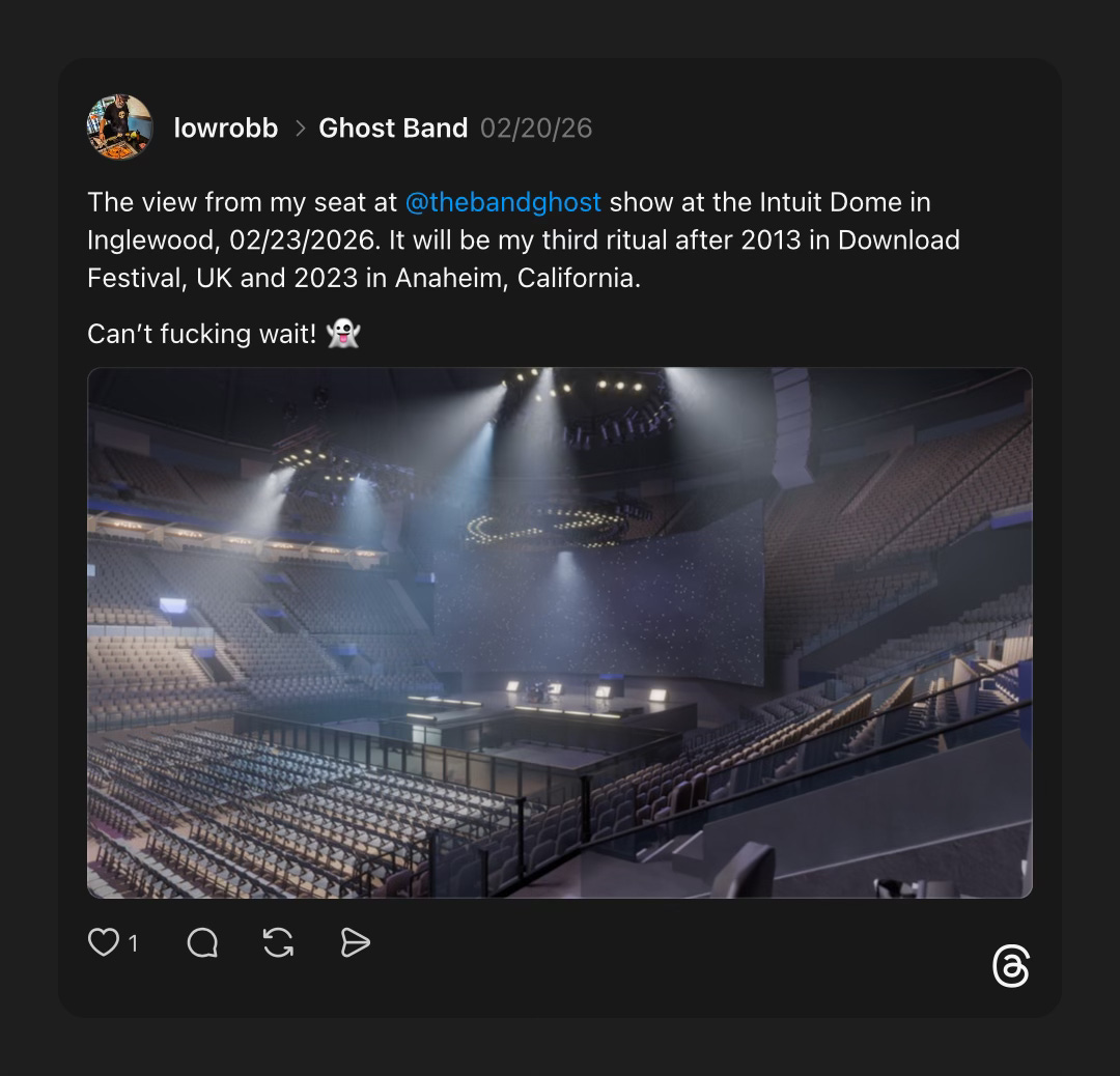 Gue teringat kembali tahun 2013 di Download Festival, waktu mereka masih main di second stage. Sudah punya fanbase, tapi masih niche banget. Sekarang? Manggung sekelas dome (biasanya gedung olah raga untuk pertandingan basket, hockey, dsb dengan kapasitas 10.000-15.000 penonton) di Amerika. Intuit Dome itu sendiri markasnya klub basket LA Clippers